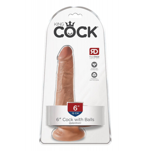 Королевский фаллоимитатор с мошонкой Pipedream King Cock на присоске, бежевый