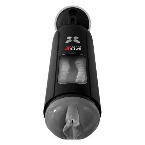 Мастурбатор вагина в колбе автоматический Pipedream PDX на присоске, с голосом, черный, 24.5 см
