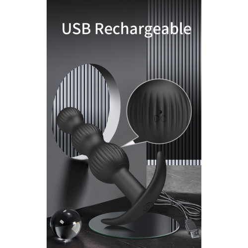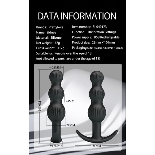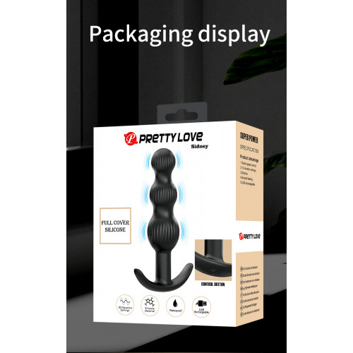 Анальная пробка с вибро PRETTY LOVE Sidney, черная, 10.9 х 2.1-2.8 см
