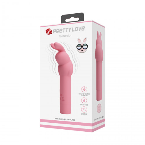 Вибратор в форме кролика PRETTY LOVE Gerardo для клитора, розовый, 13.6 х 3.2 см