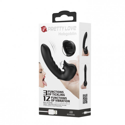 Вибронасадка на палец с всасыванием Pretty Love Hobgoblin силиконовая, черная
