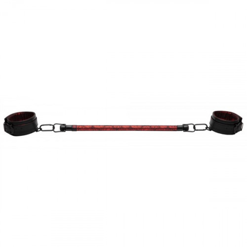 Пара мягких манжет из искусственной кожи обхватывают лодыжки вашего партнера прочным, но удобным захватом благодаря застежке с пряжкой с шестью отверстиями, в то время как прочный металлический стержень помогает раздвинуть ноги для легкого доступа к их самым интимным областям.