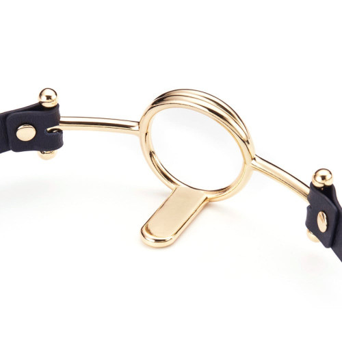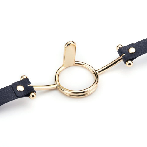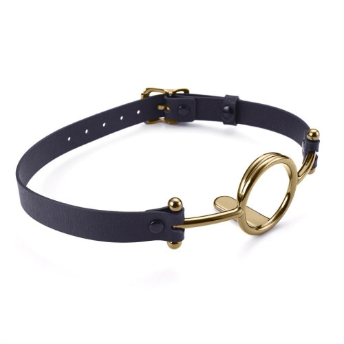 Кляп черный Roomfun Romfun Mouth Gag M с золотым кольцом для прижатия языка