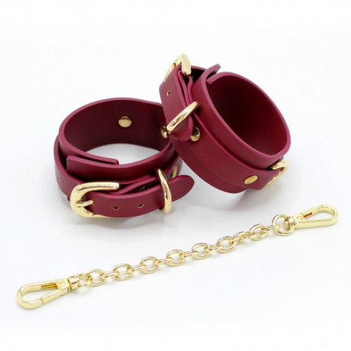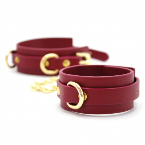Наручники из экокожи бордовые Romfun Handcuff с золотистой фурнитурой