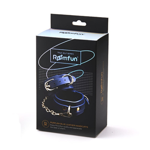 Наручники из экокожи синие Roоmfun Handcuff с золотистой фурнитурой