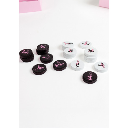 42 фишки (21 белая + 21 черная), каждая с изображением позиции Камасутры