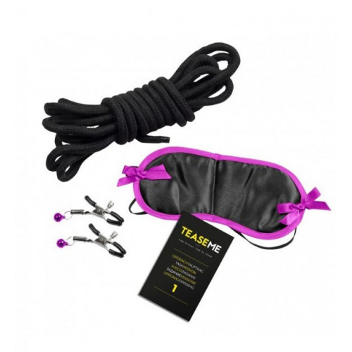 В комплект входят: маска на глаза веревка для связывания цепкие зажимы на соски