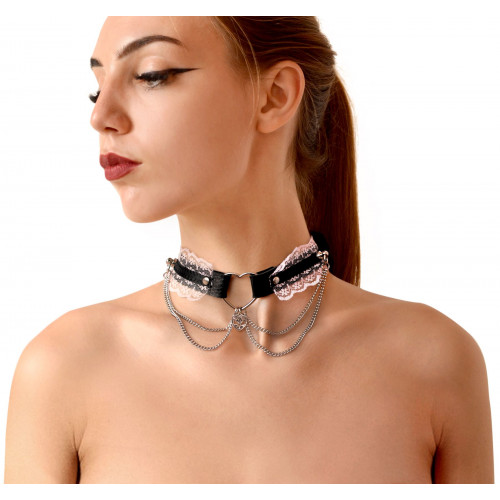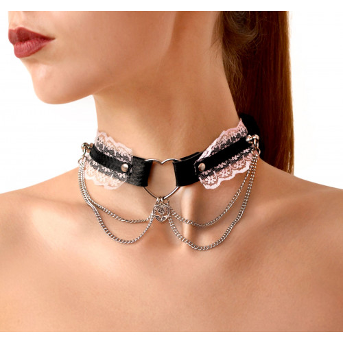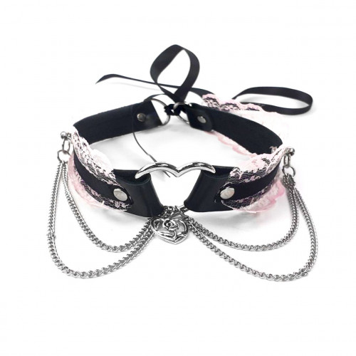 Сексуальний чокер Art of Sex - Karen из натуральной кожи, Черно/Розовый