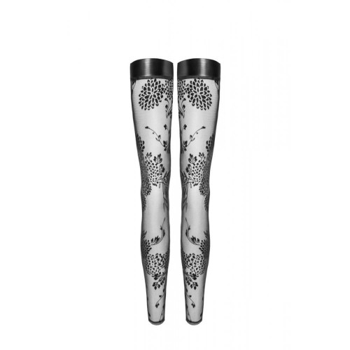 Эротические полупрозрачные чулки с открытыми носками и виниловыми коронками F243 Noir Handmade, с цветочными узорами, черные