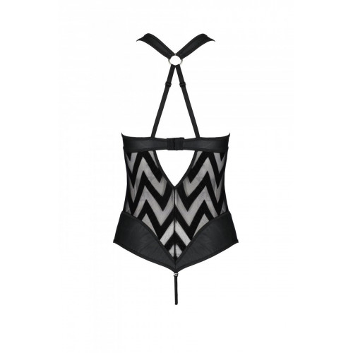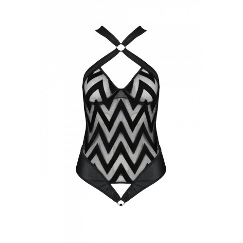 Сетчатый боди с халтером и ритмичным рисунком Hima Body black S/M - Passion:
