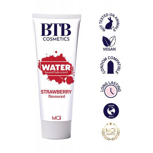 BTB FLAVORED STRAWBERRY решает проблему с нехваткой природной смазки, не оставляет пятен и липкости. Это обеспечивает максимальный комфорт при использовании. Лубрикант легко смывается водой, что делает его удобным в использовании.