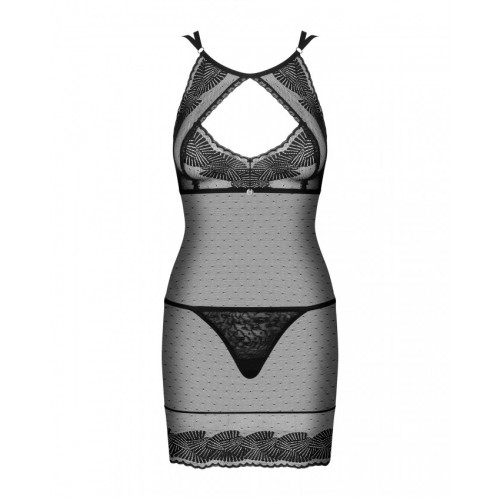 Сорочка кружевная Obsessive Allastia chemise & thong black L/XL