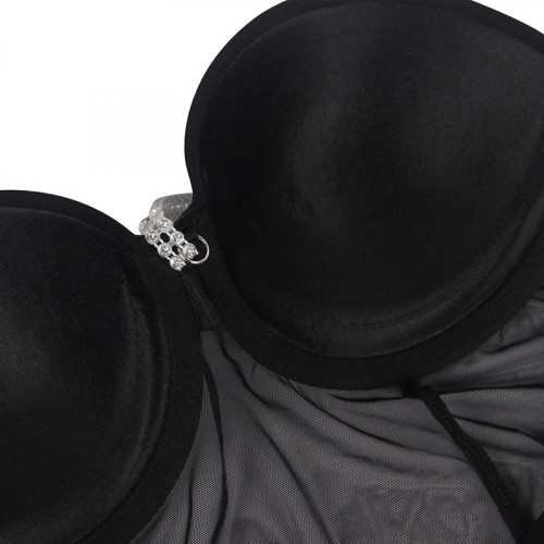 Боди полупрозрачное Star Night с бриллиантовым поясом, черное, XL-XXL