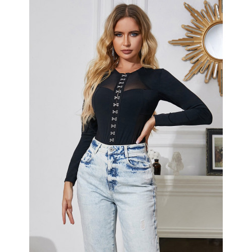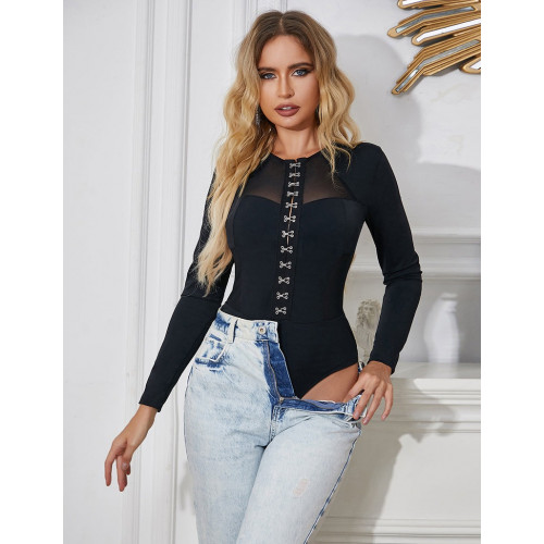 Боди из комбинации тканей — плотной и полупрозрачной, придаст вашему образу неповторимый шик и изысканность. Полупрозрачные вставки из сеточки добавят образу загадочности и сексуальности. Они подчеркнут вашу женственность и придают неповторимый шарм, делая вас еще более привлекательной и завораживающей.
