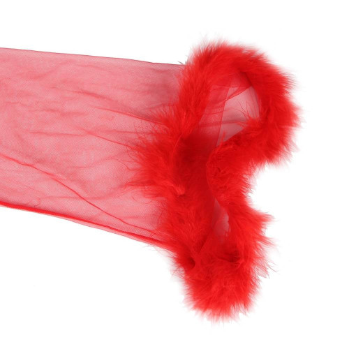 Роскошный дизайн с длинными рукавами и открытым передом позволяет создать соблазнительный, но в то же время изысканный вид. А искусственный мех дарит ощущение тепла, что делает этот халатик идеальным даже для прохладных вечеров.