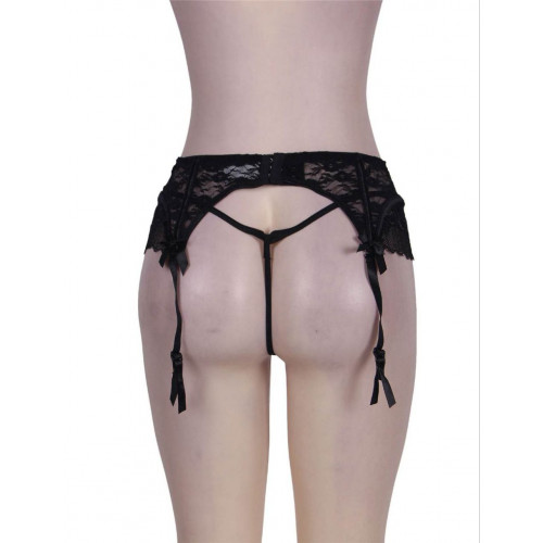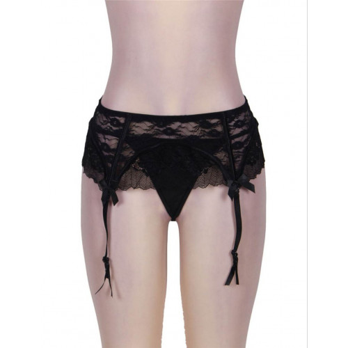 Комплект Star Night кружевной пояс для чулок и трусики стринги, черный