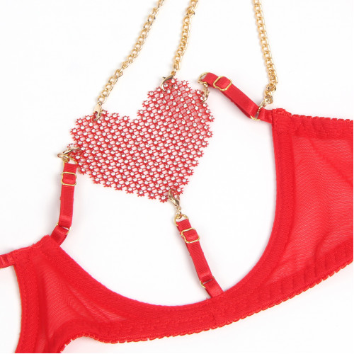 Красный сексуальный комплект белья в сеточку Star Night с цепочками и сердцами, L
