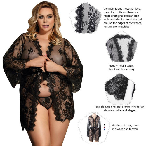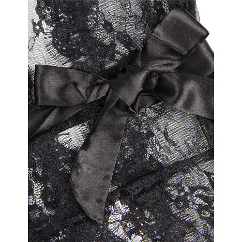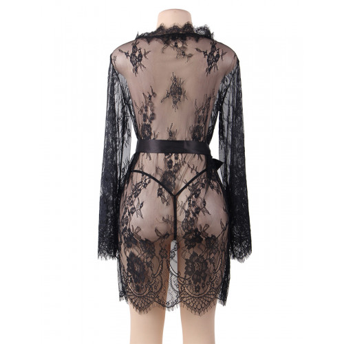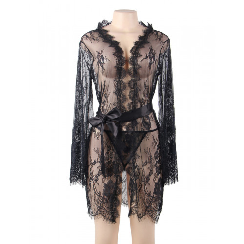 Пеньюар короткий Star Night с кружевом и длинными рукавами, черный M-L