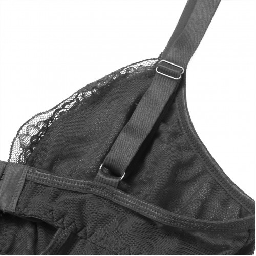Комплект дополнен трусиками в тон, что делает образ завершённым и гармоничным. Верхняя часть пеньюара оформлена кружевом, подчёркивающим декольте и придающим особое очарование.