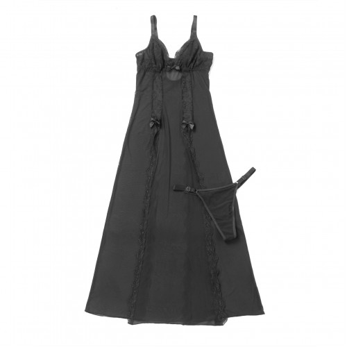 Платье-пеньюар макси с разрезами Star Night с трусиками, с кружевом, черное, S