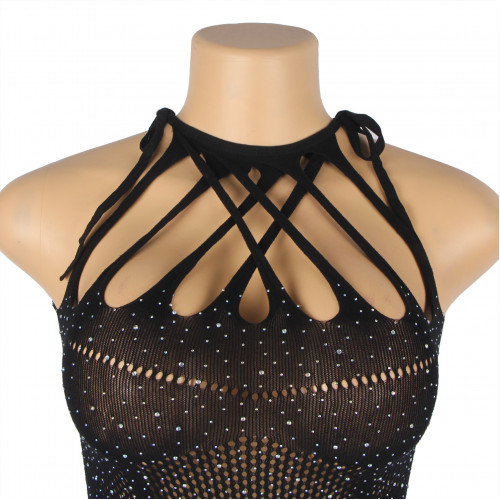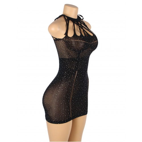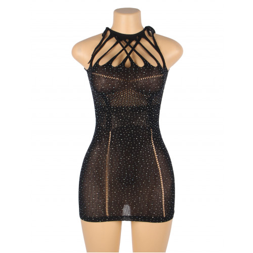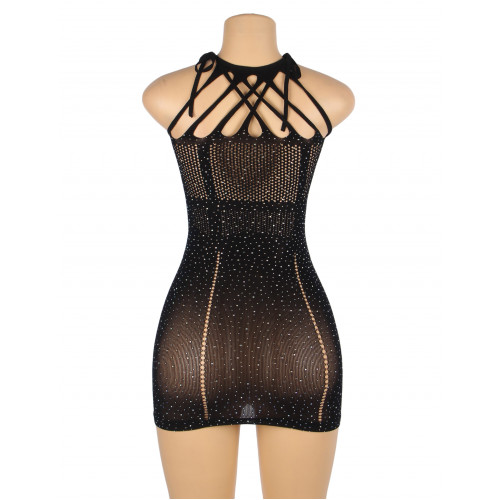 Платье в сеточку с украшениями в виде страз Star Night черное XS-M