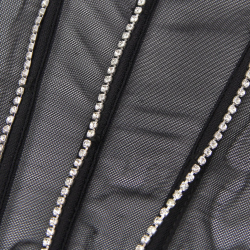 Этот роскошный комплект Star Night — настоящий образец современной элегантности и сексуальности. Полупрозрачная черная сетка создает интригующий эффект обнаженного тела, а блестящие стразы на бюстгальтере и корсете добавляют шика и гламурного блеска.