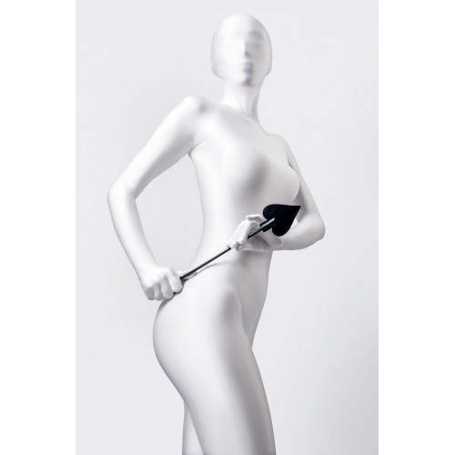 Чорний стек з наконечником у формі серця-піки стане в пригоді для відчутного покарання неслухняного партнера. Матеріал: PU шкіра. Загальна довжина: 36 см. Довжина наконечника: 8 см. Ширина наконечника: 7 см.