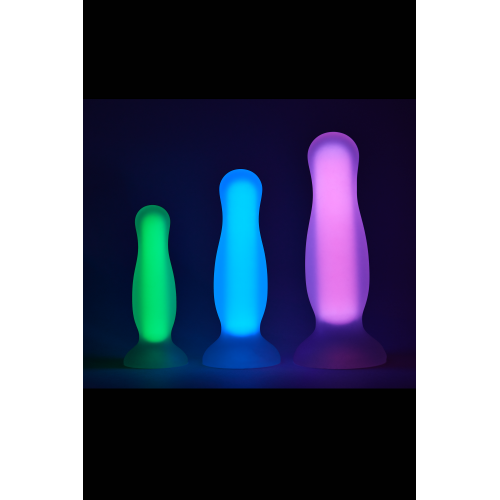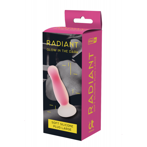 Светящаяся в темноте анальная пробка от лейбла Dream Toys Radiant, изготовленная из мягкого и полупрозрачного силикона с прочной присоской для использования без помощи рук.