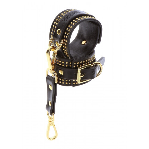 Элегантные черные наручники украшены золотыми декоративными элементами для придания роскошному виду. Этот поразительный контраст цветов подчеркивает силу и страсть, позволяя вам почувствовать свои сокровенные желания.