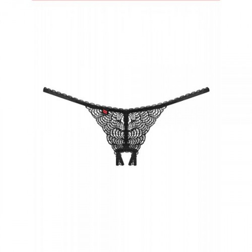 Невероятно красивые стринги от популярного бренда эротического белья Obsessive произведут неизгладимое впечатление на вашего партнера. Черные стринги декорированные необычным кружевом имеют открытый доступ к интимным зонам, что невероятно возбудит и приятно удивит мужчину.