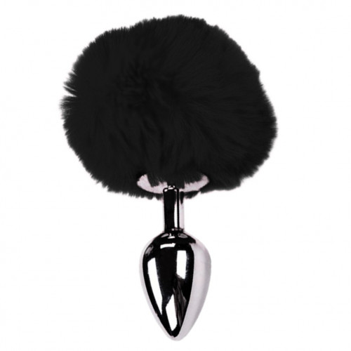 Анальная пробка сочетает гладкую металлическую вставную часть и декоративную основу с пушистым черным помпоном, что создает контраст тактильных ощущений и выразительный визуальный акцент. Коническая форма с постепенным сужением и заостренным кончиком обеспечивает контролируемое введение, а хромированная поверхность придает характерную прохладу материалу и облегчает скольжение.