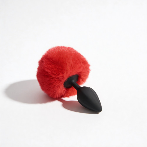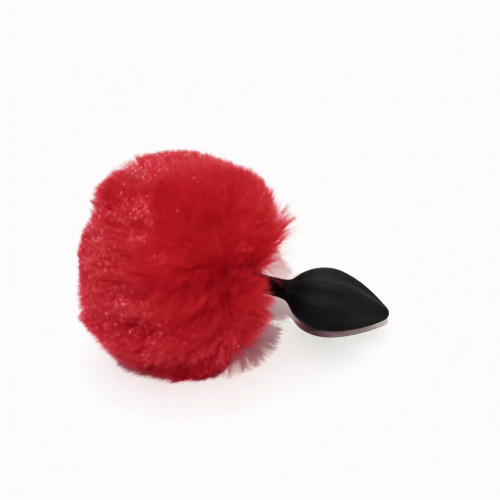Анальная пробка рельефная ALUME, S, красная с красным пушком и сменным прозрачным камнем, 7 х 2,8 см