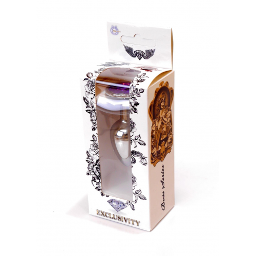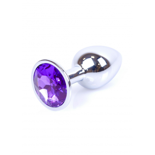 Срібляста анальна пробка з гладкою безшовною поверхнею. Створена з високоякісного металу, безпечного для здоров'я. Іграшка має зручний розмір і гладку конічну форму, яка забезпечує легке і безпечне користування. Для додаткових відчуттів, іграшку можна помістити в гарячу або холодну воду. Широка основа декорована сяючим фіолетовим кристалом. Довжина - 7 см, діаметр - 2,7 см.