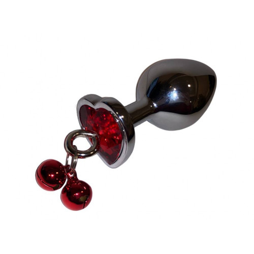 Анальна пробка з кристалом і дзвіночками Runye, з повідцем, з металу, 8 х 3.5 см