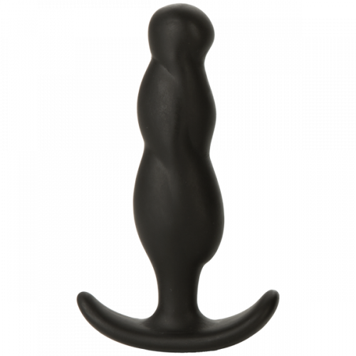 Анальна пробка оригінального анатомічного дизайну з плавними формами. Виріб має округлий невеликий наконечник для комфортного проникнення і ергономічне зігнуте підстава-обмежувач для безпечного використання. Пробка виконана в чорному кольорі з високоякісного бархатистого силікону, безпечного для здоров'я. Довжина - 11,5 см