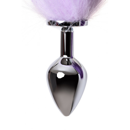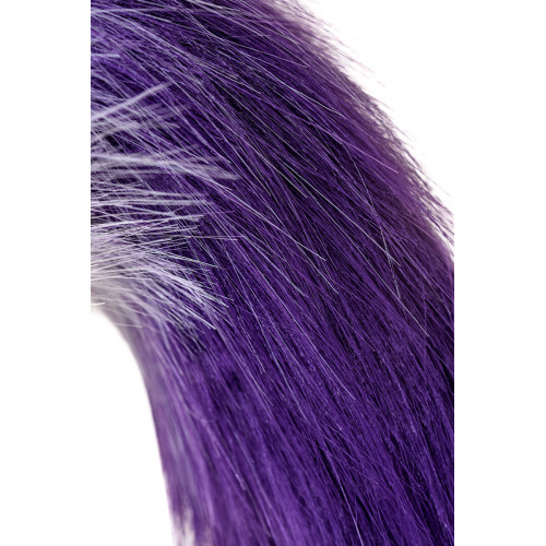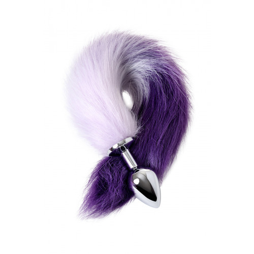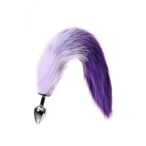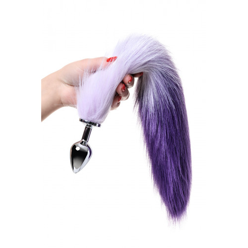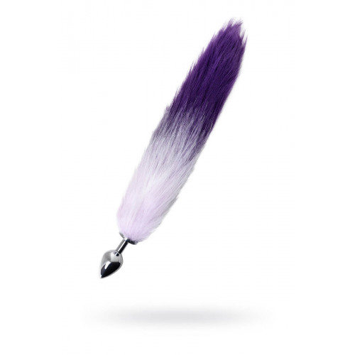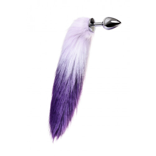 Анальна втулка Metal By Toyfa з біло-фіолетовим хвостом, метал, сріблястий, 45 см, ø 3,3 см