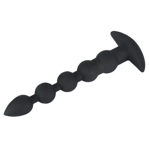 Анальний стимулятор з 7 режимами вібрації. Виконаний у формі кульок, плавно збільшуються в діаметрі. Зроблено в чорному кольорі з гіпоалергенного шовковистого силікону. Призначений для стимуляції простати у чоловіків і стимуляції задньої стінки піхви у жінок. Широка основа сприяє безпечного використання і легкому керуванню. Довжина - 21 см, діаметр - 3,1 см.