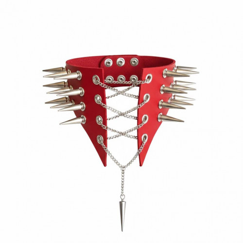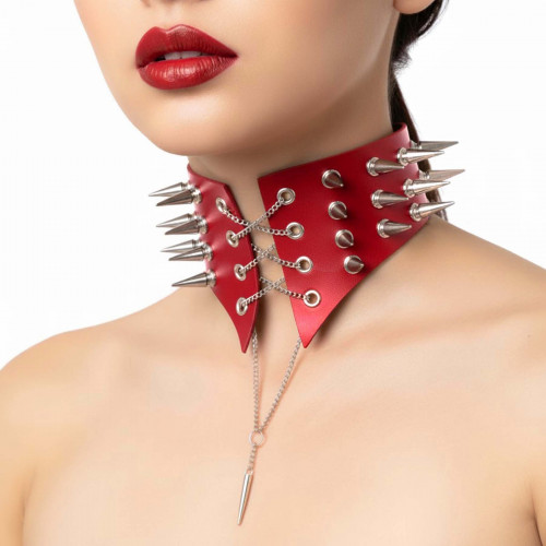 Чокер воротник с шипами Art of Sex - Ariadna, натуральная кожа, цвет красный, XS-M