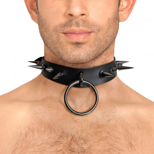 Изготовленный из высококачественной кожи с использованием сверхпрочной металлической фурнитуры, этот ошейник сочетает в себе дизайн, удобство и эффективность. Ошейник украшен большим металлическим кольцом, к которому можно подсоединить поводок. Такая комбинация обеспечит множество вариантов для реализации ваших горячих фантазий и поможет глубже погрузиться в мир игр с доминированием и подчинением. Также ошейник украшен острыми металлическими шипами, которые создают ощущение опасности, но при этом выглядят очень сексуально.