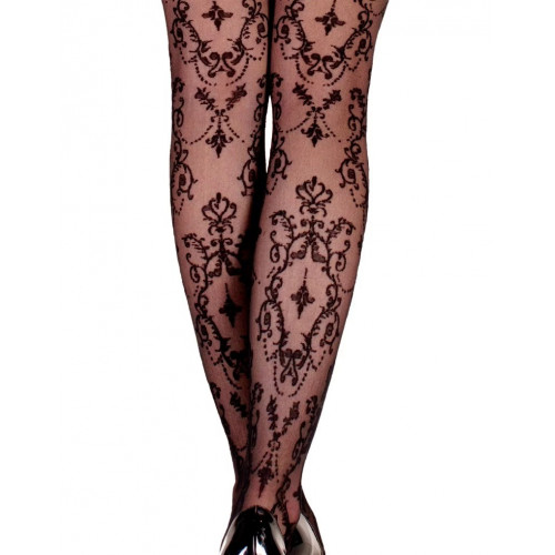 Чулки на силиконовой ленте черные Ballerina's Secret BS113 с узором ,,барокко,, по всей длине, S/M