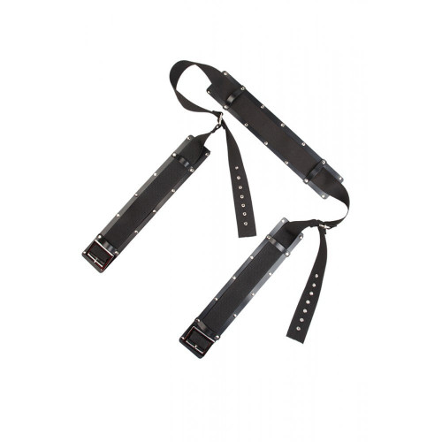 Множество фантазий можно воплотить на самом деле с этим бондажным набором! Фиксируясь за шеей мягким ошейником без застежек, надежные ремни идут к поножам, крепящимся в районе бедер. С таким набором легче всего будет удерживать ноги партнера в позе с изогнутыми коленями. Скут движений принимающего – одна из самых распространенных практик, встречающихся в тематике БДСМ, и с этим набором вы сможете воспроизвести все задуманные вами сценарии, принося партнеру и новые эмоции. Добавив мощный вагинальный вибратор, вы сможете сделать пытку послаще, а используя крепкий кожаный стек – более пикантным. Надежная конструкция скреплена за счет фурнитуры серебристого цвета. Поножи регулируются, поэтому размер универсален и подойдет всем любителям острых ощущений.