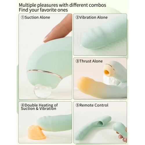Вибратор со съемным вакуумным стимулятором BeYourLover Fatima с подогревом, мятный