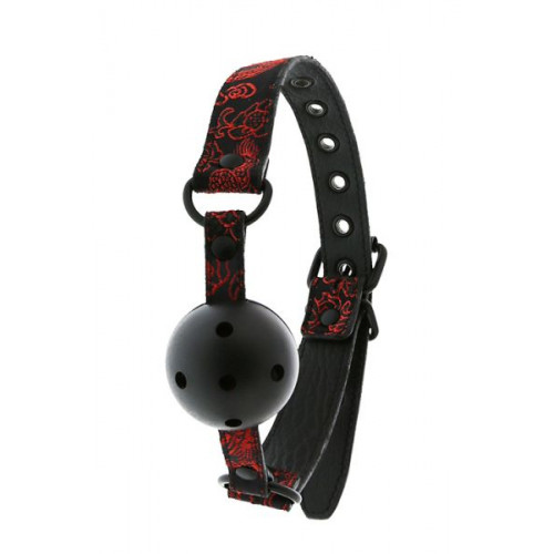 Breathable ball gag. The smooth plastic ball is tasteless and odorless and remains comfortable to wear due to the holes. The neck strap is fully adjustable with buckle closure.
