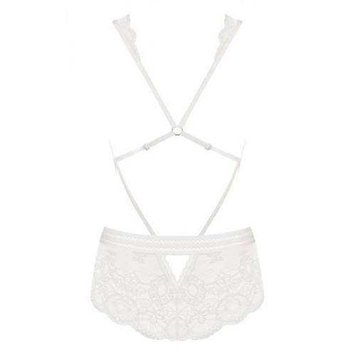 Ніжний, дуже чуттєвий мереживний боді білого кольори, стане прекрасним доповненням в ваш еротичний гардероб. Створіть легкий, як подих весняного вітерця, еротичний образ. Комбінація мережива спереду та спокусливе переплетення бретелей на максимально відкритій спині, vобразный виріз та мереживні шортики, – все ці деталі здатні звести з розуму вашого партнера! будьте готові до безлічі чудових вражень! особливості: чуттєвий боді - поєднання топ та шортиків прозора сітка - еротичний акцент глибокий спокусливий виріз еластичні регульовані бретелі сзаду - ідеальна посадка трикутні вирізи спереду та зверху рішення comfycut в області трусиків - зручність носіння тонкі розрізи по боків ніжна та еластична тканина (90% поліамід, 10% еластан.