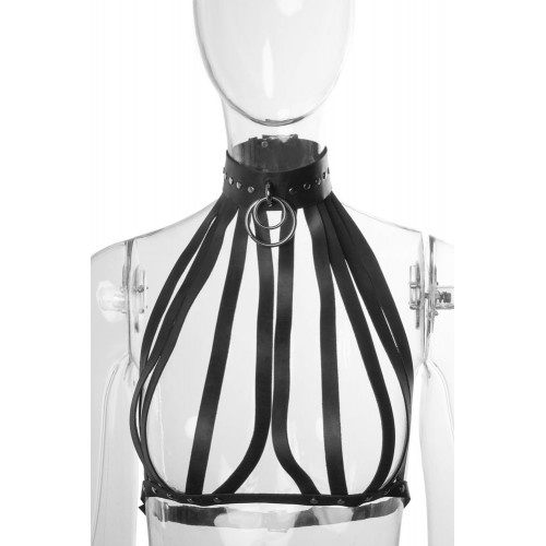 Зухвалий і незвичайний бюстгальтер із замінника шкіри високої якості, виконаний вручну.