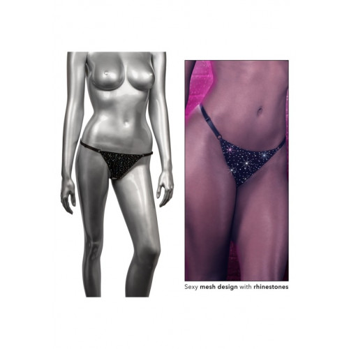 Трусики стринги со стразами и открытым доступом CalExotics Crotchless Thong, черный