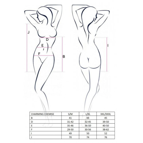 Короткий сексуальне міні завжди буде актуальним трендом в сфері вишуканою еротики. Милий напівзакритий еротичний пеньюар passion erotic line charming chemise з великим кількістю щільних елементів грає на межі сексуальності та невинності, ніжності та пікантності.