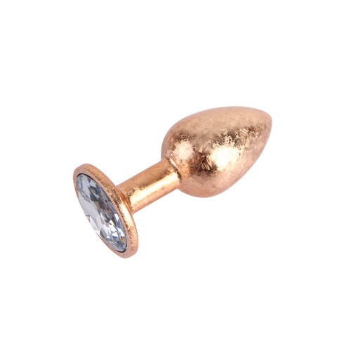 Анальная пробка золотая поталь CHISA MATRIX MONT с белым камнем, размер S