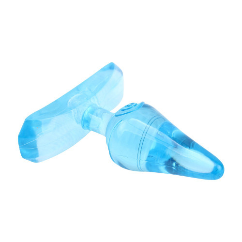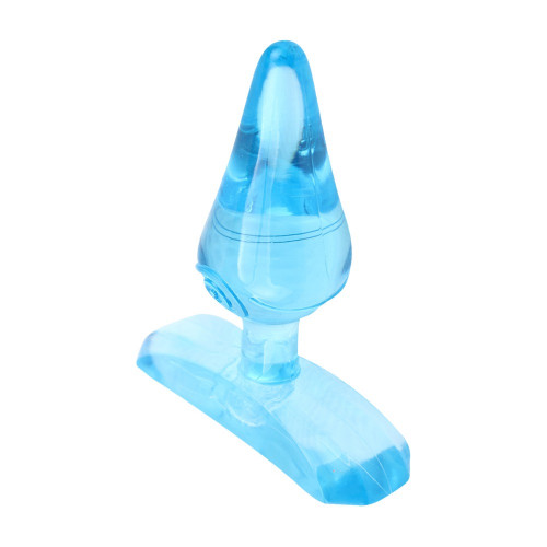 Анальная пробка голубого цвета. Небольшой размер пробки подходит для начинающих.