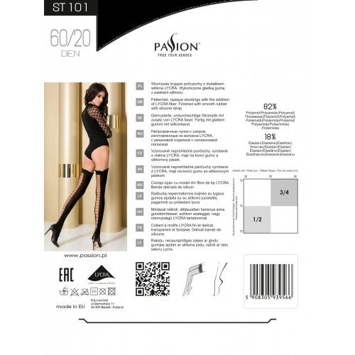 Пропонуємо купити сексуальні панчохи виробництва європейської фірми passion. Модель st101 nero чудово поєднується з еротичними корсетами та комплектами еротичного білизни. Висока якість матеріалу та елегантний дизайн зроблять ці панчохи невід'ємною частиною гардероба будь-який модниці. Завдяки додаванню волокон lycra сексуальні панчохи мають прекрасної формостійкістю та після розтягування в кілька раз здатні повернути свою первісну форму.